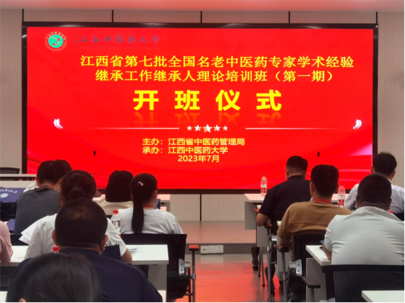 7月19日上午,由省中医药管理局主办、学校承办的我省第七批全国老中医药专家学术经验继承工作继承人理论培训班(第一期)开班式在阳明校区隆重举行。学校副校长杜建强,省中医药管理局科教处处长江蓉、副处长周盛大出席,华亿平台党总支书记饶印保主持,继承工作指导老师代表和来自省内中医药行业的80名继承人等参加。