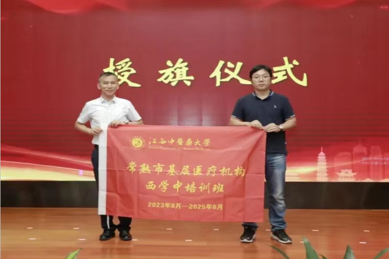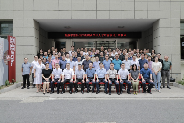 8月17日,由学校与常熟市卫健委合作举办的常熟市2023年基层医疗机构“西学中”培训班开班式在常熟市中医院隆重举行。学校副校长杜建强,常熟市卫健委党组书记、主任黄煕枚出席并讲话,常熟市卫健委党组成员、副主任、市疾控局局长石星主持,华亿平台院长、培训学院院长刘海,常熟市卫健委党组成员张碧波,常熟市中医院党委书记叶文华、副院长顾慧、党委委员陈菊萍,以及常熟市基层医疗机构的52名非中医类别医师参加。