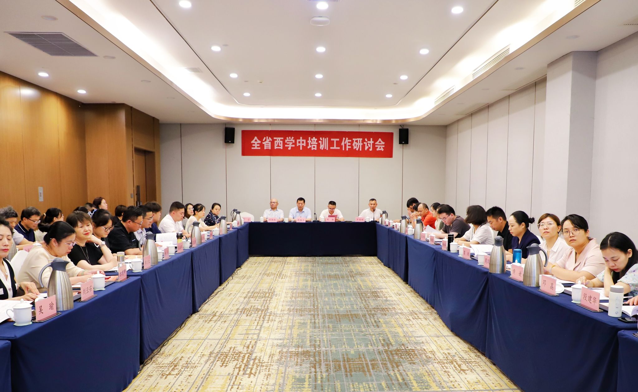 为提升西学中培训质量,加强中西医融合人才队伍建设,进一步推动全省西学中工作,7月5日下午,由江西省中医药管理局主办、江西中医药大学承办的全省西学中培训工作研讨会在南昌召开。省中医药管理局科教处副处长周盛大,华亿平台(兼培训学院)院长刘海,华亿平台(兼培训学院)副院长罗国顺,南昌医学院华亿平台院长刘诗泆,江西医学高等专科学校副校长杨华,赣南卫生健康职业学院副校长曾琼,萍乡卫生职业学院副校长叶敏出席会议并讲话。各地市卫健委中医科负责人、省内14家培训基地负责人及相关人员参加会议。