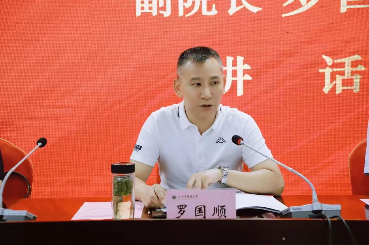罗国顺欢迎各位学员参加第二期—“荟萃名医、博采精华”模块培训,并介绍了一年来学校在人才队伍建设、科学研究方面取得的新成绩、新突破。勉励大家作为全省老中医药专家学术经验继承人,在中医求索路上砥砺奋进,矢志不渝,不遗余力,共同追寻中医药的精髓,努力成就中医药的辉煌。