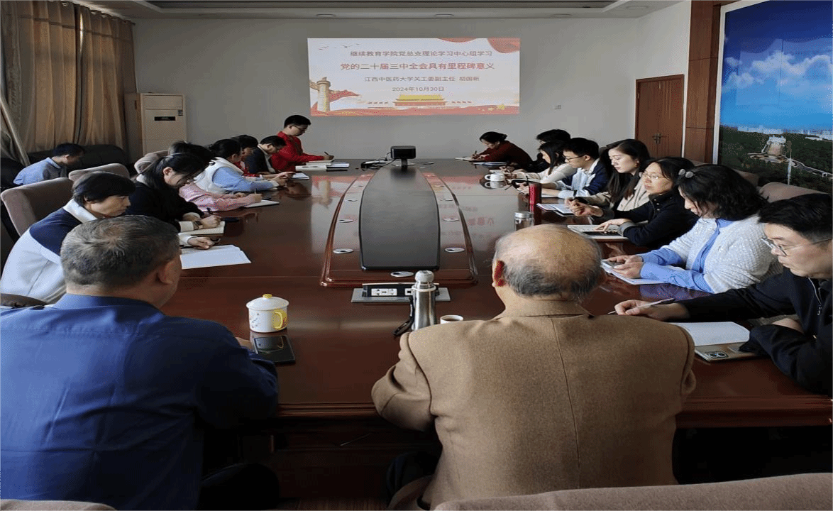 为深入学习贯彻党的二十届三中全会精神,10月30日下午,华亿平台党总支召开理论学习中心组专题学习会暨党的二十届三中全会精神解读。邀请学校关工委副主任胡国新作辅导解读,学院党总支书记饶印保主持会议,全体党员及职工参加。