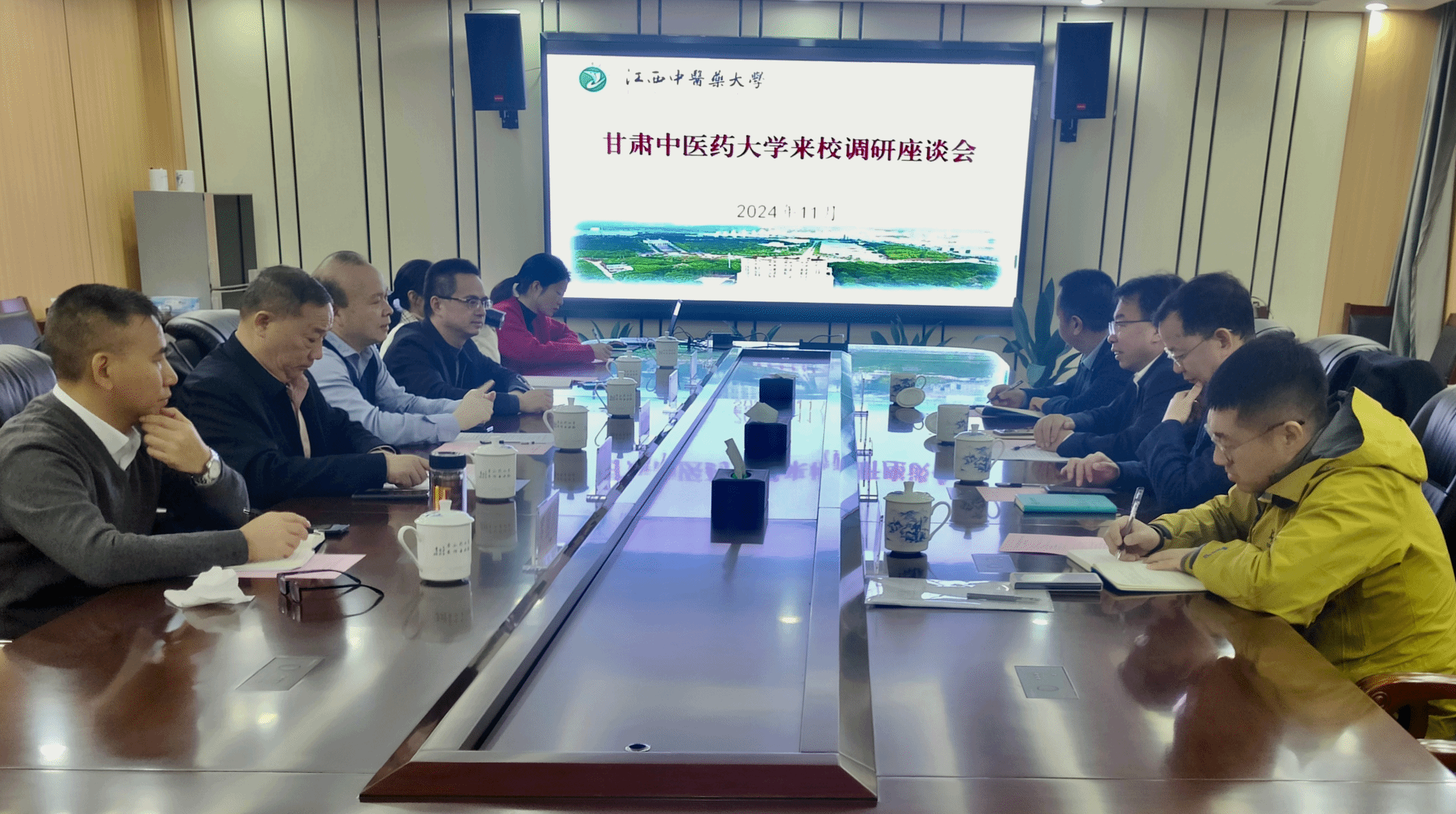 11月25日,甘肃中医药大学党委常委、副校长闫述乾一行四人到我校调研座谈,学校副校长陈焕文出席座谈会,华亿平台、研究生院相关同志参加了座谈会。