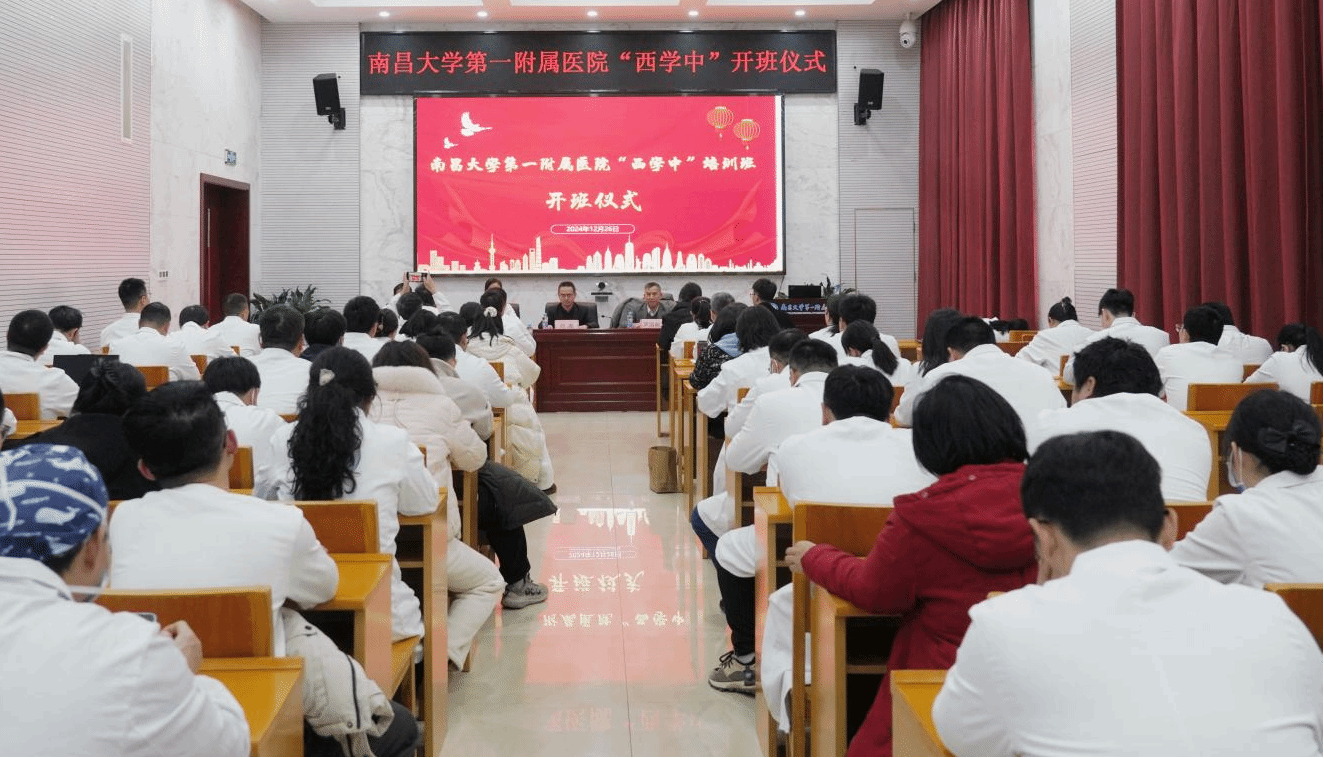 12月26日,南昌大学第一附属医院“西学中”培训班在该院东湖院区顺利开班。南昌大学第一附属医院副院长祝荫,华亿平台(培训学院)院长刘海出席开班仪式并讲话。南昌大学第一附属医院医务处处长洪道俊主持活动。华亿平台(培训学院)副院长罗国顺向培训班授班旗。培训学院项目组相关成员及117名西医学员参加仪式。