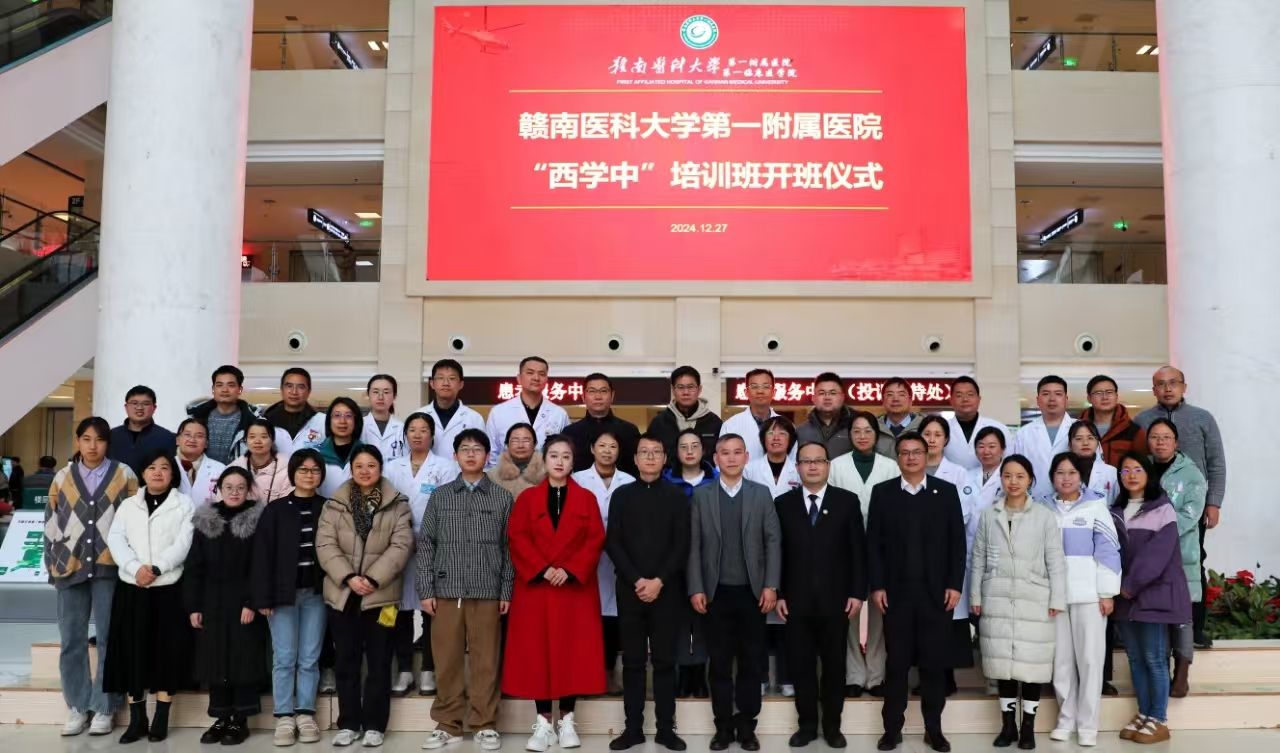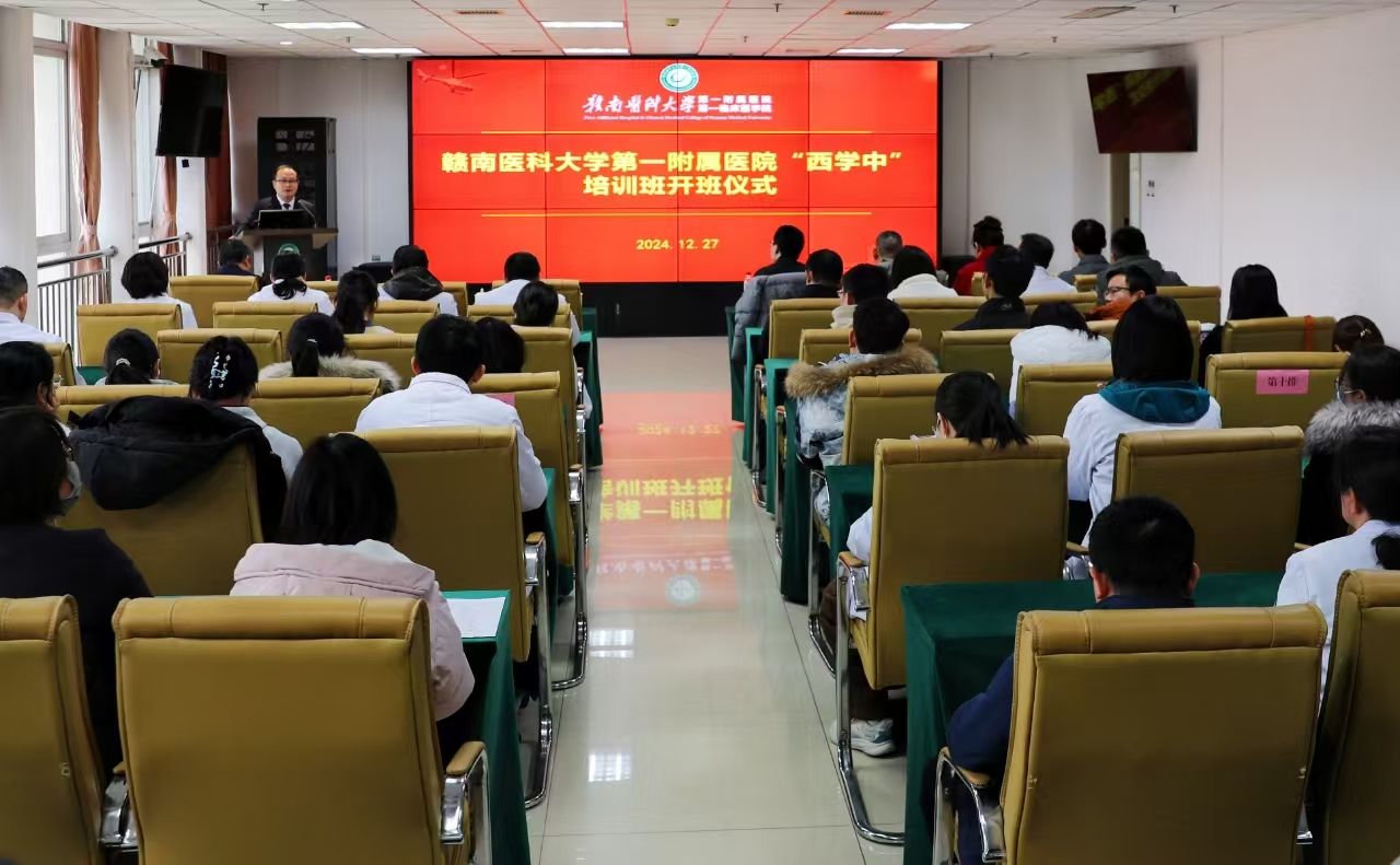 12月27日下午,赣南医科大学第一附属医院“西学中”培训班在该院黄金院区开班。学校华亿平台副院长、培训学院副院长罗国顺,赣州市卫生健康委中医科科长姚期文,赣南医科大学第一附属医院党委委员刘子由出席开班仪式并讲话。赣南医科大学第一附属医院医务部主任刘建平主持仪式,培训学院项目组成员及50名非中医类别医师学员参加活动。