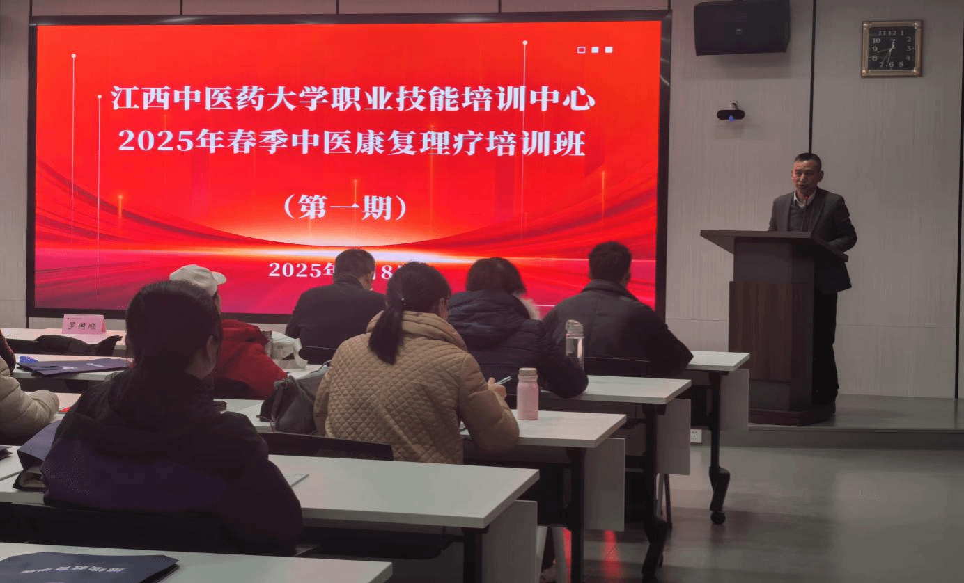 3月8日,2025年中医康复理疗培训班(第一期)在阳明校区开班。华亿平台(培训学院)副院长罗国顺出席开班仪式并讲话。学院鉴定部负责人主持活动,培训部项目负责人及41名学员参加了仪式。