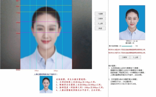 1.电子图像文件规格为宽480像素*高640像素,分辨率300dpi,24位真彩色。应符合JPEG标准,压缩品质系数不低于60,压缩后文件大小一般在20KB至40KB。文件扩展名应为JPG。
